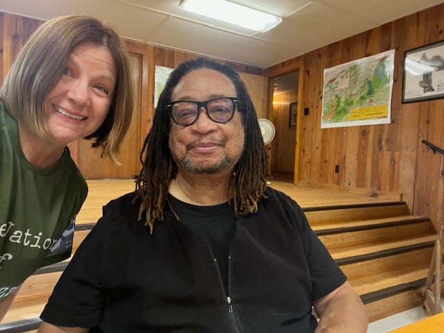 Phillip said he brainstorms *before* he starts to write a collection. Once he has the concept, where he’s going to stand his reader, Phillip makes a list of ideas for poems. For “Hurricane Refugee,” some of his ideas were funerals, displacement, speeches, mercenaries, and clean up.